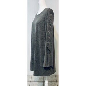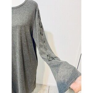 This gorgeous Easel dress is perfect for any occasion. The soft cotton blend fabric in a solid gray color is adorned with a beautiful lace-down bell sleeve. The crew neck and pullover closure make it easy to wear, while the fit and flare style adds a touch of elegance.