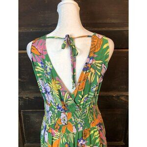 Easel Size S Dress Tropical Floral Sleeveless Flowy V Neck Long Maxi Green