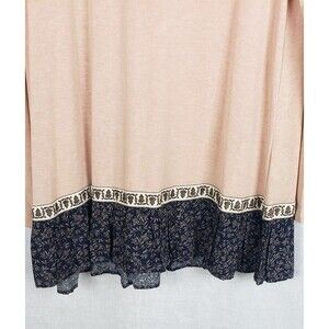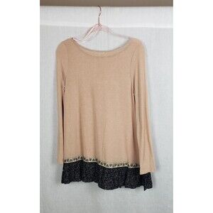 Easel Tunic Top Oversized S Tan Black Peplum Pleated Hem Casual Boho Peasant