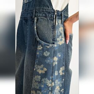 Easel Washed Denim Floral Flower Overalls Jumpsuit New