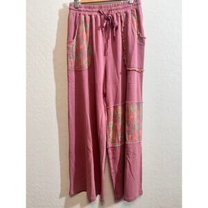 Easel Womens Athleisure Patchwork Mineral Wash Terry Cloth 2 Pc Pant Set Pull on