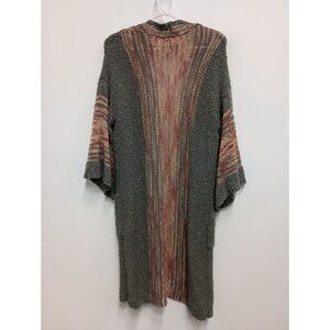 Easel Womens BOHO Duster Cardigan S/M Orange Gray Flare Sleeve Hippie