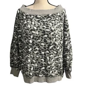 Easel Women's Black Gray White Leopard 100% Cotton Boxy Sweatshirt Sz L