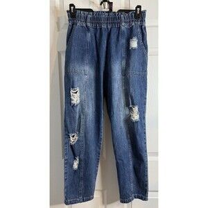 Easel Women’s Distressed White Burch Pull On Jeans Elastic Stretch Waist Sz S
