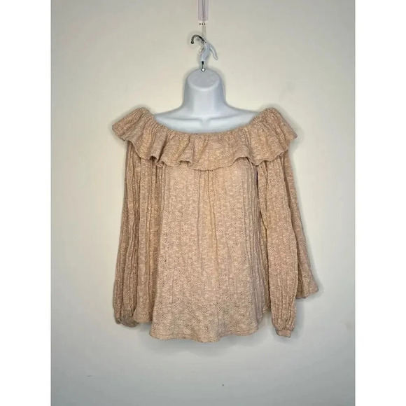 Easel Womens Knitted Off The Shoulder Ruffle Knitted Top Romantic Boho SIZE S