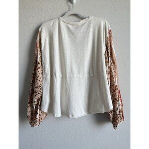 Easel Women’s Large Boutique Cream Patchwork Flare Balloon Long Sleeve Top Boho