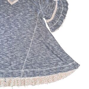 Easel Women's Loose Fit Floral Trim Ruffle Short Sleeve Hoodie Size Large