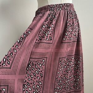 Easel Women’s Pink Animal Print Pleated Boho Casual Stretchy Maxi Skirt Size Med