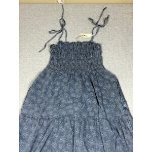 Easel Womens Size M Denim Floral Smocked Maxi Dress NWT
