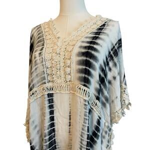 Easel Y2K Boho Top Womens Size M Tie Dye Hippie Lace Butterfly Sleeve Tunic