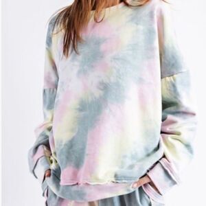 Easel an Anthropologie Brand, sweatshirt & sweatpants set,Tie Dye in sage pink.