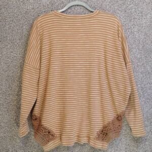 Easel striped casual oversized sweater S with lace trim. Relaxed Slouchy fit sweater.