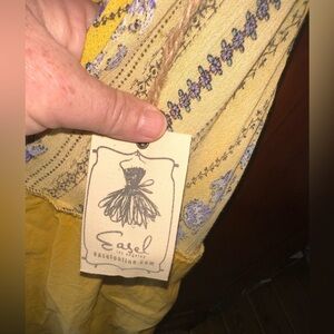 Easel large French yellow and lavender maxi sundress with pockets.crochet lace
