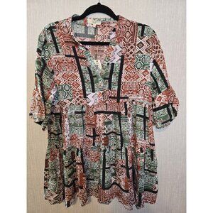 Easel tiered tunic top baby doll patchwork print pattern size M New