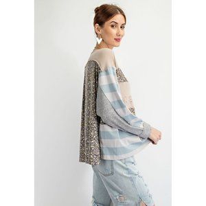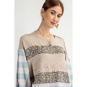 Easel top long sleeve Stripe Floral Print Cotton Oversized easel shirt NEW small