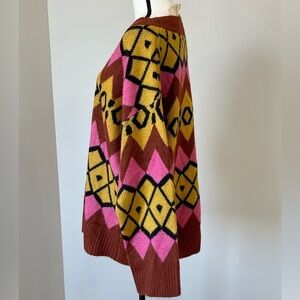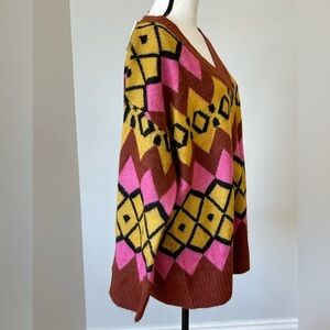 Easel women's Aztec wool blend sweater super soft size large v neck comfy