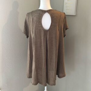 Easel Taupe Short Sleeve Sweater - Keyhole Back