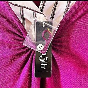East 5th Berry/Purple Faux 2 Piece Long Sl Sweater With Shirt Insert Sz Lg Nwt