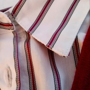 no more fussing trying to get your shirt and sweater to look perfect. this beautiful fuchsia Berry sweater with striped shirt insert is your answer to a perfect look.