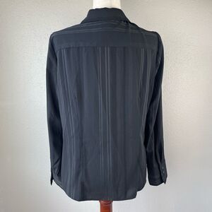 Stylish button-down dress shirt by East Fifth. It measures 20 inches armpit to armpit laying flat and 26 inches in length from the shoulder to the hem.