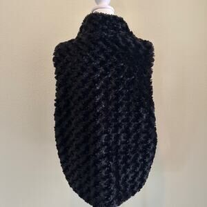 women’s faux fur vest, East 5th vest, zip front black vest, cozy winter layering piece, size L/XL vest