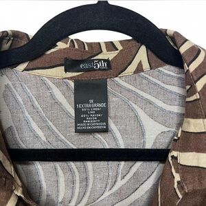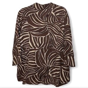 East 5th Brown Cream Zebra Print Linen Blend Button Down Shirt 1X