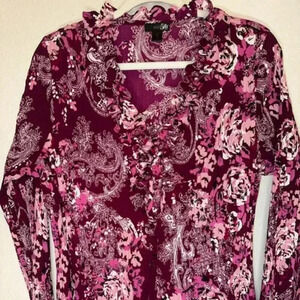 East 5th Button Up Shirt Crinkle Pleated Bishop Sleeve Floral Fairy 1X