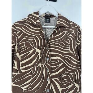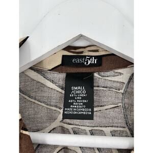 East 5th Button Up Womens Small Brown Zebra Striped Linen 3/4 Sleeves Collared