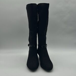 East 5th Ellerton boots, wedge boots women, black knee-high boots, size 6.5M boots, East 5th shoes, faux suede boots, memory foam boots, tall wedge boots, women’s dress boots, buckle detail boots, East 5th black wedge, women’s fashion footwear