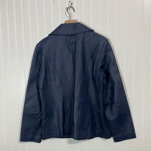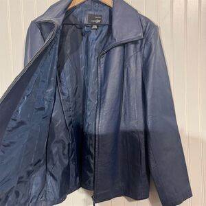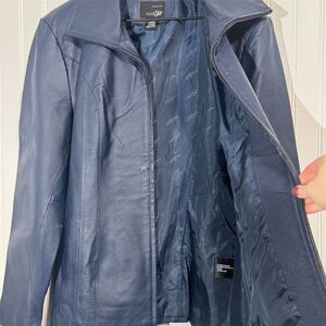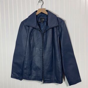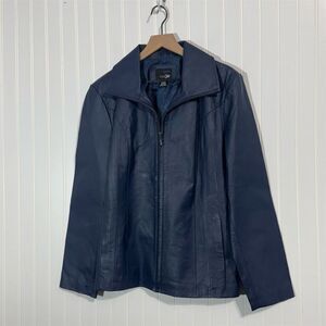 East 5th Genuine Leather Jacket Women’s L Navy Blue Zip Front Nappa Pigskin Moto