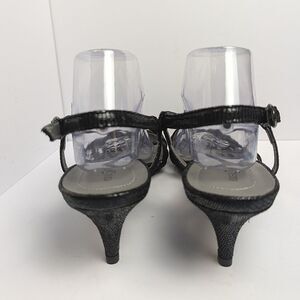 East 5th Gotham Black Metallic Strappy O-ring Sandal Low kitten Heels Women's 11