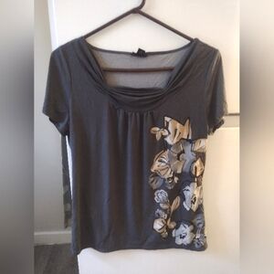 East 5th Gray and Beige Floral Blouse Size L.