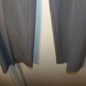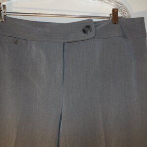 gray color way is a solid , higher rise , flared leg , material is 74% Polyester 22% Rayon 4% Spandex , one functioning change pocket in front , no belt loops , Sz 14 rise measures 12" Inseam measures 31" Width of flare measures 10" Waist lying flat measures 17.5" , two buttons and Zippered closure , decent wearable used condition no holes or stains , a new hem has been basted in . Pet friendly non smoking home