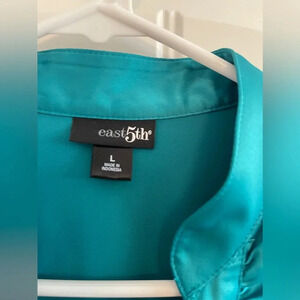 East 5th Large Green Sateen Ruffle Neck Cap Sleeve Tie waist belted blouse