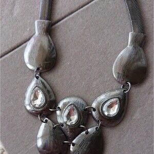 East 5th Statement necklace, charcoal color, teardrop shapes, rhinestones