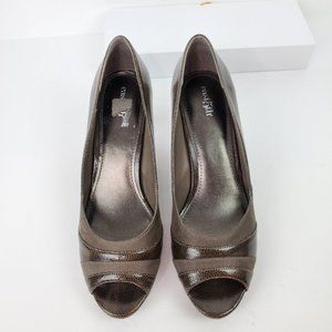 East 5th Taupe Open Toe Joan Peep Toe Pumps Heels Size 9M