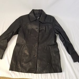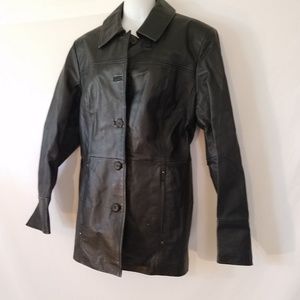 East 5th Womens Leather Jacket Black Genuine Button Front Coat Size Large
