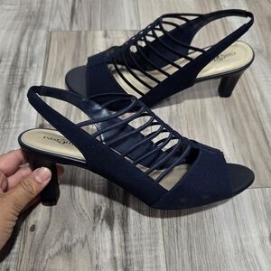 These east 5th women's Neville high-heeled sandals are a must-have to elevate any look. Crafted from smooth faux suede, this open-toe style has a 2.5-inch block heel, an elegant strappy design, and a slingback strap for a supported fit. Style yours with slim-leg pants and a shirt or your favorite evening dress.