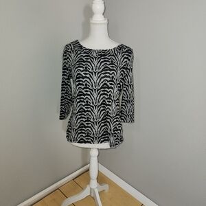 East 5th black and white zebra printed 3/4 sleeve top Size Medium
