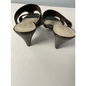 East 5th chocolate brown studded 3" heel sandals women's size 8M