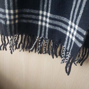 Stay warm and stylish with this luxurious lambswool s arf Featuring a lassi bla k and white plaid design its perfe t for any o asion