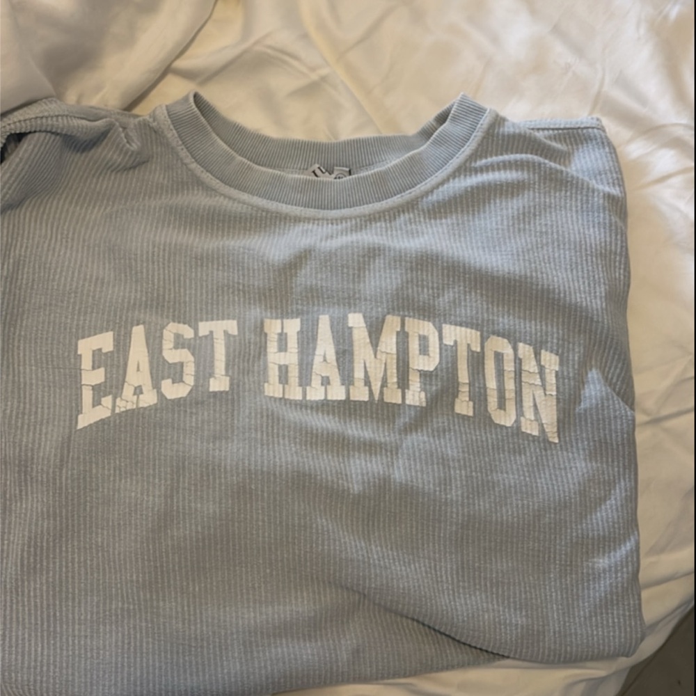Size medium ribbed Carolina blue East Hampton hoodie. Vintage style. In good-excellent condition but not pristine