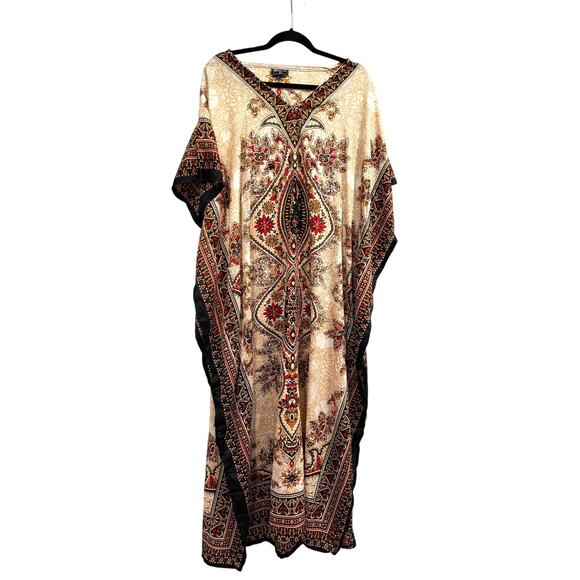 East Link Kaftan Maxi Dress 52 Beige Black Red Paisley Boho Kimono Tunic Lounge