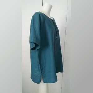 East Ltd. Blue 100% Linen Plus Size Shirt