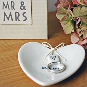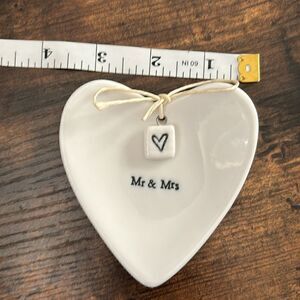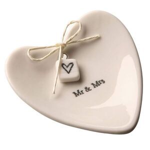 East of India Mr & Mrs Heart-Shaped Ring Dish Porcelain New No Box