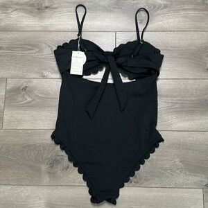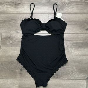 EastElegant Black Scallop Maternity One Piece Swimsuit Size Large. New with tag! 95% polyester/5% Spandex. Adjustable shoulder straps. Soft removable pads. See spictures for size chart and measurements.