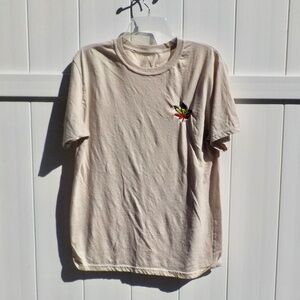 East/West Men's Tan T-Shirt with embroidered Marijuana Leaf