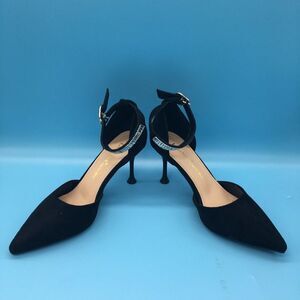 Eastanna Point Toe Low Heels Ankle Strap Rhinestones Pumps