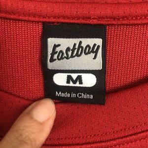 Eastbay Men's Medium Jersey Long Sleeve Crew Neck Red & White Embroidered Logo