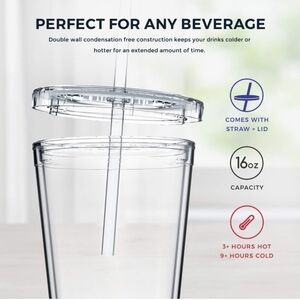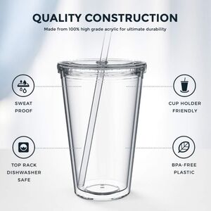 Classic Insulated Tumblers 16 oz | Double Wall, Reusable Plastic Acrylic - Clear.